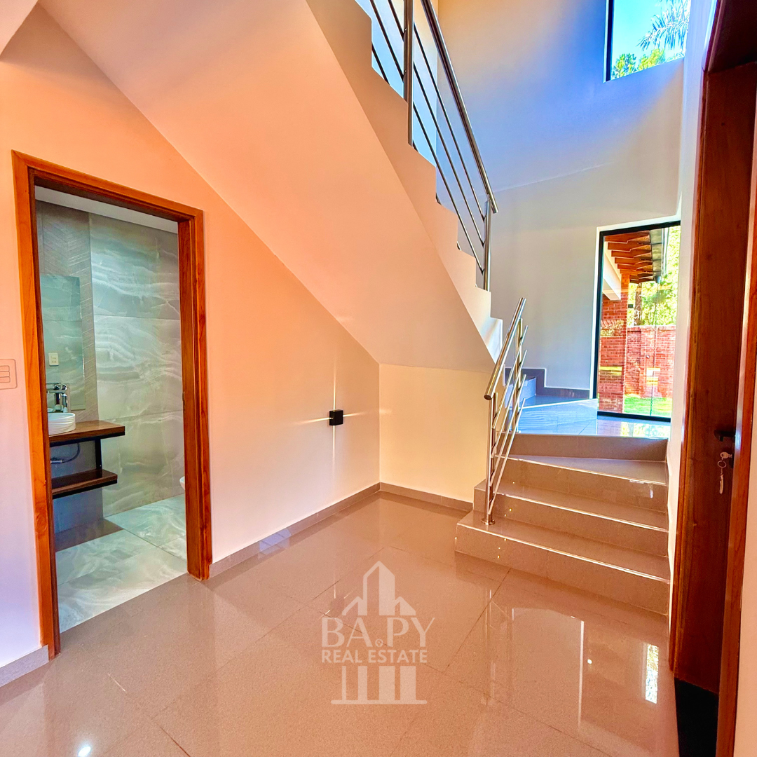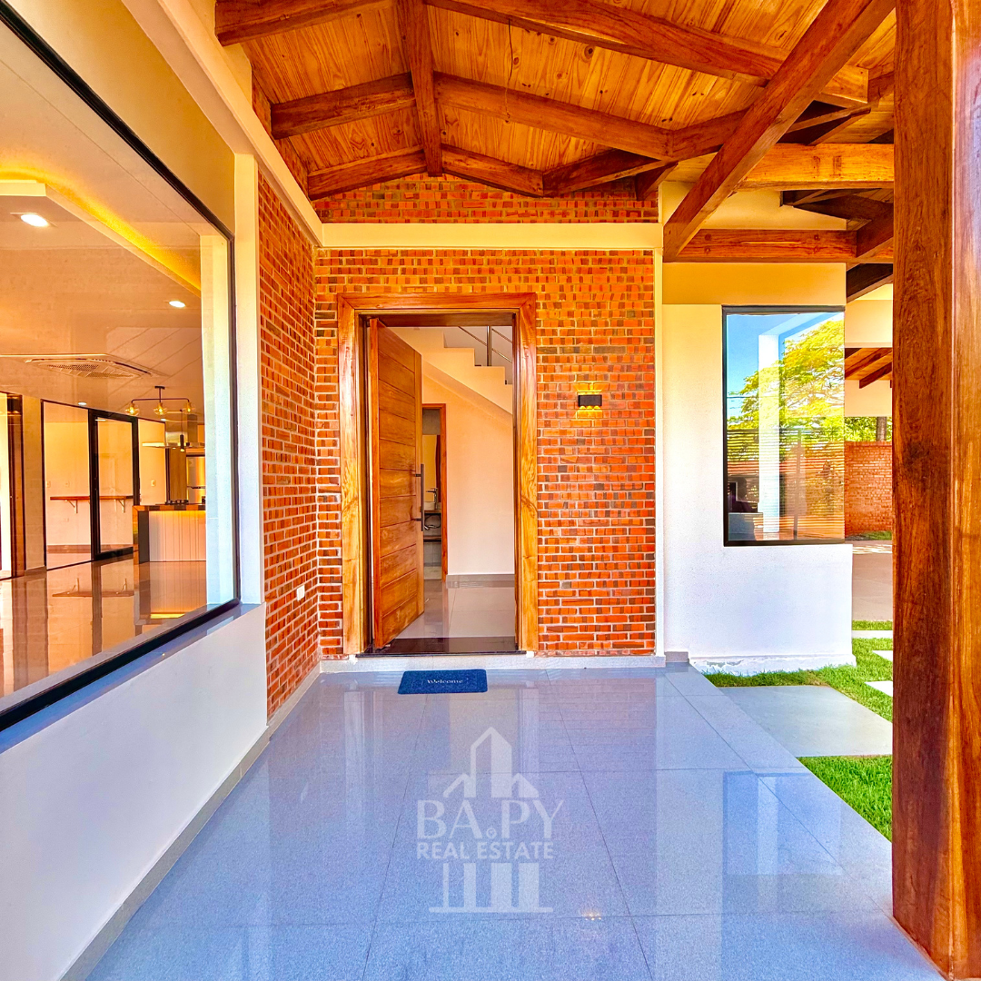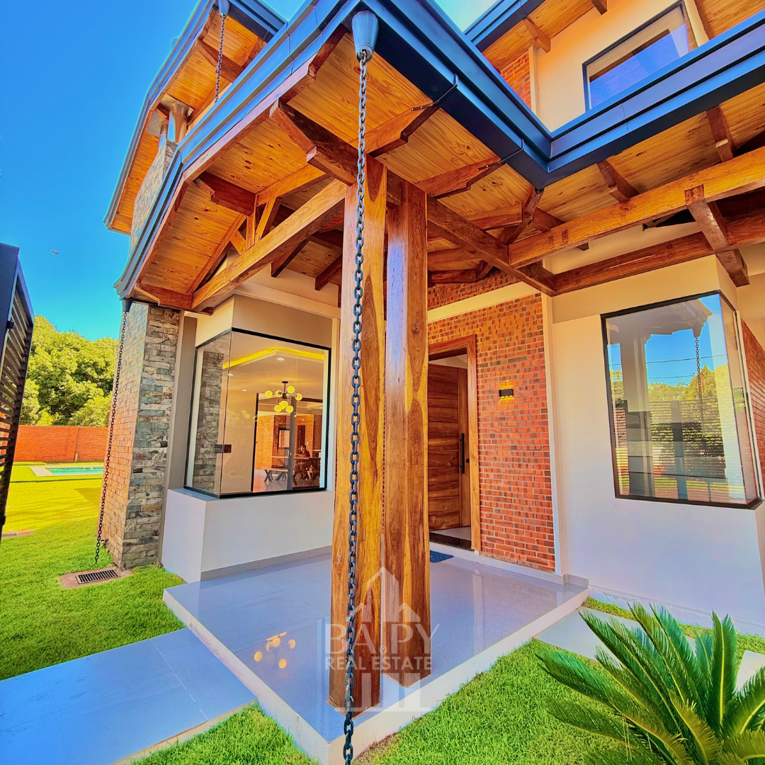 Casa de lujo en Ka’aguy Rory, Encarnación, ubicada a pasos de las mejores playas y cerca de servicios clave. Desarrollada sobre 524 m² de terreno con 268 m² construidos, ofrece 3 dormitorios (master suite), habitación de servicio, áreas integradas, quincho premium y piscina. Se entrega semi amoblada, combinando diseño moderno, confort y ubicación estratégica.
